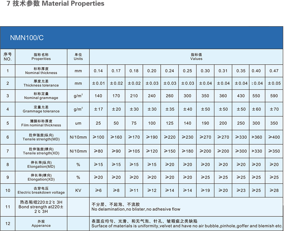 NMN100/C是三層的柔軟復合材料,外面兩層是杜邦公司Nomex絕緣紙,內層為聚酯薄膜。